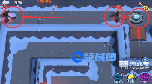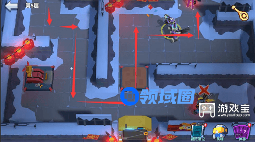 4、第5步:按照红色箭头顺序,杀怪,拿钥匙。(如上图所示)