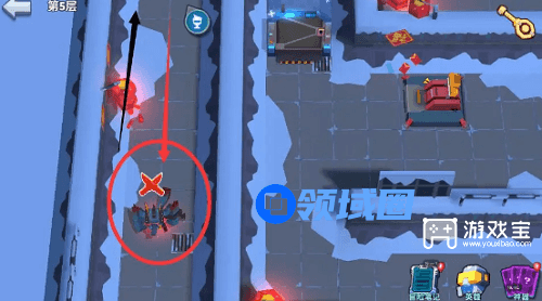 6、第7步:红圈处有一个怪,打掉,宝箱别开,然后顺着红色箭头方向走。(如上图所示)