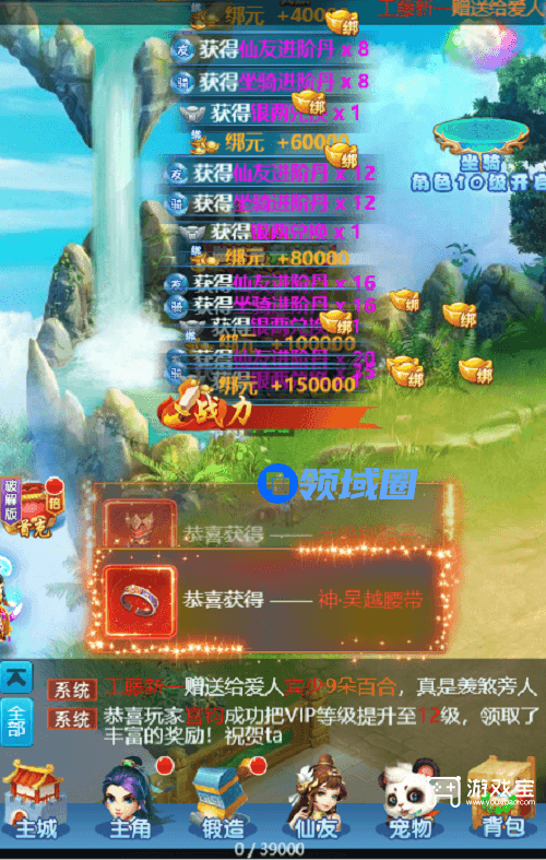2、进入游戏以后在兑换界面输入上面的兑换码以后就可以领取到大量的元宝和直冲奖励了。