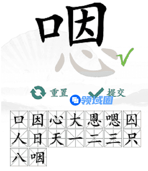 1、口、因、心、大、恩、嗯、因、人、日、天、一、二、三、只、八、咽。