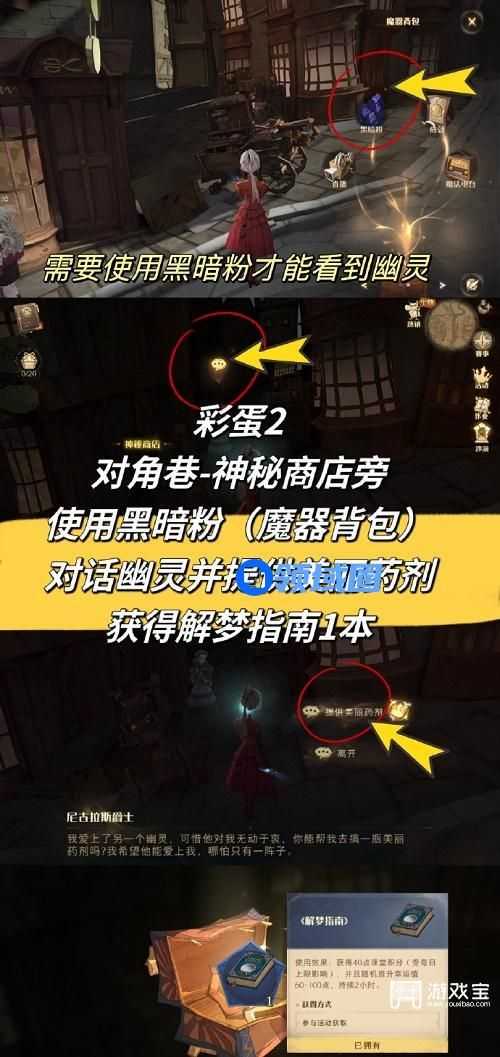 奖励:对话幽灵并提供美丽药剂,可获得解梦指南1本
