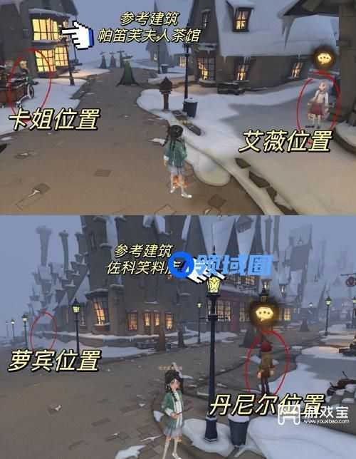卡姐在霍格莫德村茶馆左侧,艾薇在茶馆对面;