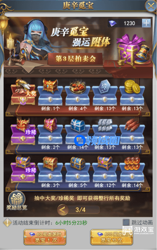 庚辛觅宝总共4层,每层包含1个大奖和2个珍稀奖