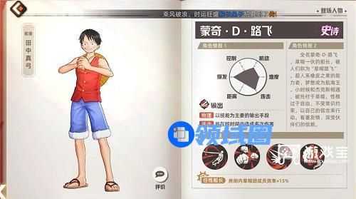 4、路飞是一个史诗伙伴,但是输出能力也是超强,有多段的输出伤害,而且和艾斯一起,也可以提高双方10%的效率。这样整个队伍的输出和持续输出能力都非常的强,不管是过本还是竞技场都非常好用哦。