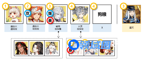 ④备注:活动没有暴击加成,输出最好满暴击,如果食灵和因幡辉夜姬同时在场,注意控制爆伤最高单位须为输出式神,兔子可换成雪幽魂清姬,狗粮可换成增伤式神或者多一个输出(其实没必要)。