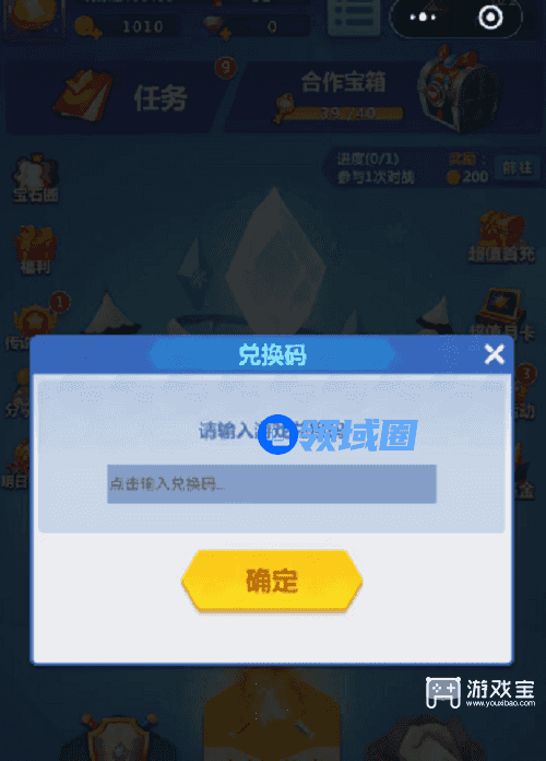 2、进入游戏以后,点击钻石旁边的三个杠,选择兑换码,输入上面的兑换码以后确定即可领取。