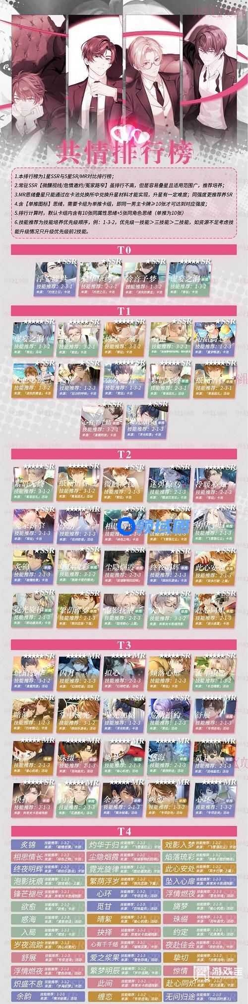 2、常驻SSR【微醺视线/危情邀约/冤家路窄】虽排行不高,但是容易叠星且适用范围广,推荐培养。