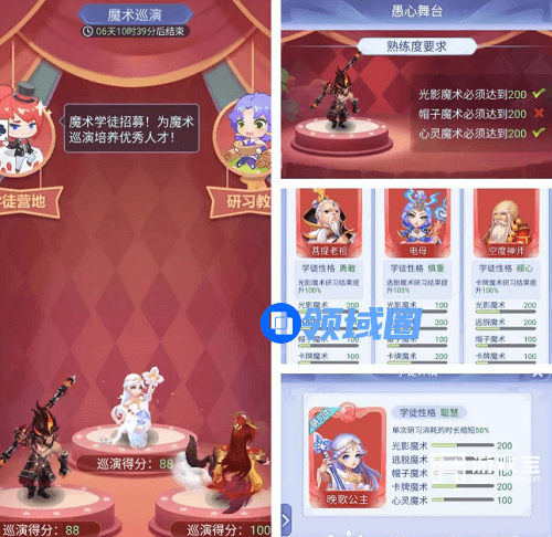 1、愚心舞台:可根据伙伴的三大学术要求进行登台,达到3个要求的学术值即可拿满奖励积分;