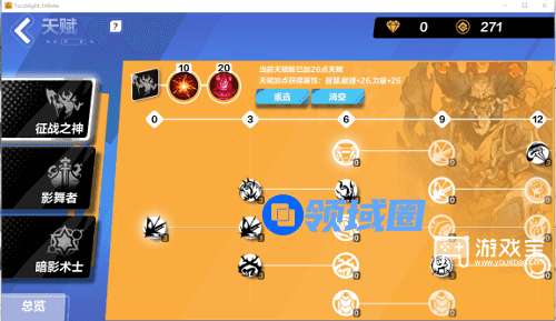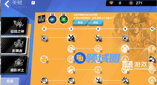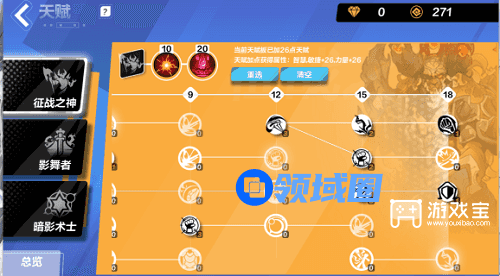 天赋大点:【野心】和【内外兼修】可以到26点就可以,会获得敏捷和力量各57点,敏捷越高出手的速度越快。