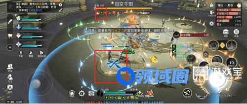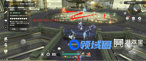 那么,当我们看到BOSS头上有五行之力的属性之后,只要把BOSS拉入能克制他五行的灵阵圈内就可以。如:下图BOSS是五行之力-火,那我们就将他拉进“水”的灵阵中。