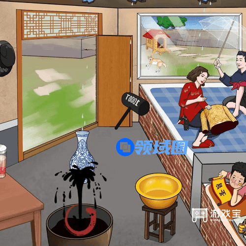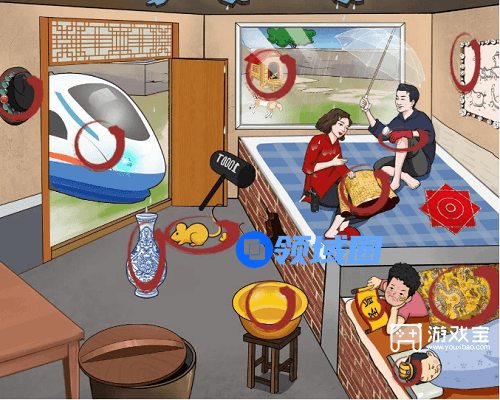 2、需要操作的:长按水缸,里面是石油、拖动1000T锤子到炕侧裂纹处,出现黄金老鼠、点击大嫂腰上车钥匙,出现私家地铁、点击强哥手套,特殊手套。共4处。