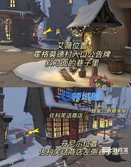 1、艾薇-霍格莫德村入口公告牌斜对面。