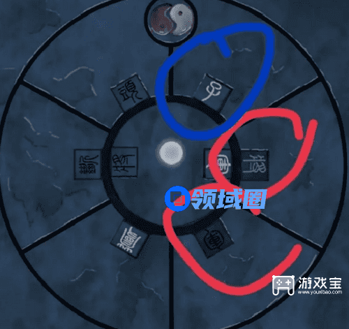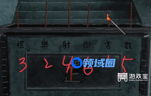 3.探索完差不多整个庙后,看到四个正字,红色为笔画顺序,按照顺序可知是狮鼎黑白,(最后一个字我没看到)但是可以通过穷举法得出最后一个字是箱。锁在黑色道长门贴的大门