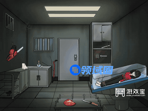 2、手脚被绳子绑着,拖动柜子里面的手术刀把绳子割开。