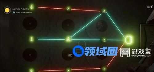3、每个激光发射器都位于圆盘上,转动圆盘就可以上下更换发射器的位置。后期的激光谜题上还会有分流发射器(将一道光束分散为两道光束),合理调整发射器的位置,将不同颜色的光束汇聚起来,让激光束的颜色与指示器上的颜色对应即可。