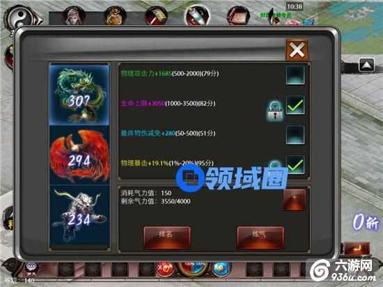 已开启的命门,玩家可以通过消耗气力值炼气,获得随机的新属性,将原属性覆盖。每次炼气,都会消耗一定的气力值。玩家可选择4条一起炼气,也可以锁定其中1条或者几条,将其他的属性炼气。不同的选择,所需要的气力值也有所不同。