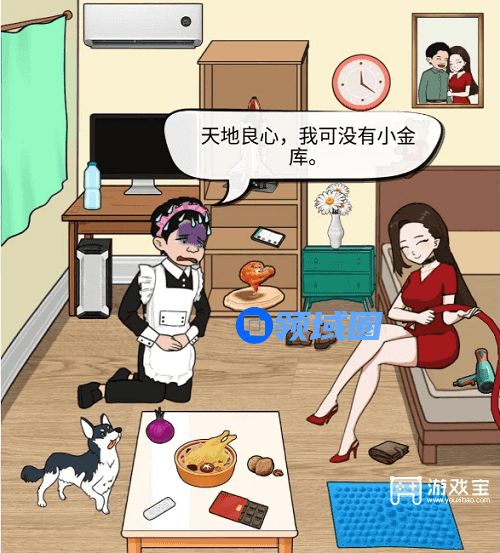 9、拖动脚垫到丈夫,不只跪指压板--钱在核桃里