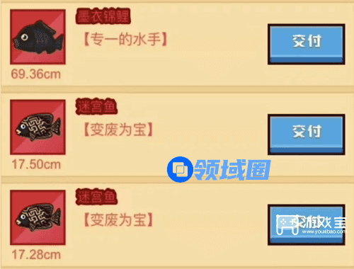 小型鱼猎手钓宝贝鱼——换饵料钓迷宫鱼——换饵料钓墨衣锦鲤。