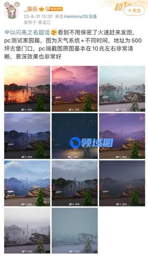 先来看看被建筑师夸赞的一组图,这是以闪PC端测试玩家分享的庭院建筑,包含不同天气下的光照效果。这组图如果不事先说是游戏建筑的话,真的会让人误以为是现实中的建筑,光照、渲染实在太真实了,难怪把建筑师都给吸引来了。