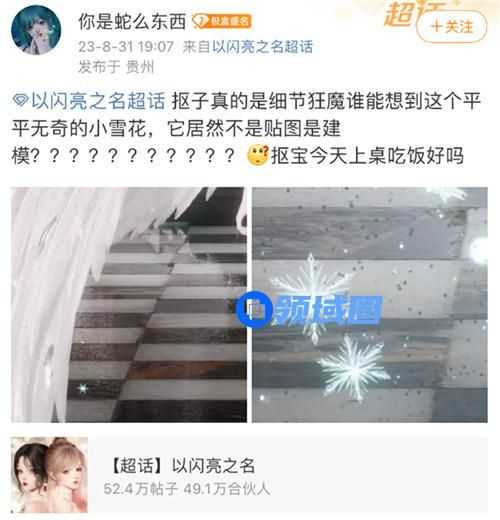 其次是特效,之前上线的爱神套装中的翅膀,有雪花的粒子特效,很多玩家都以为这个雪花是贴图特效,毕竟雪花很小,一般不会特地去观察。没想到PC端放大后发现,这个雪花竟然是立体建模的,玩家都直呼以闪制作组是细节狂魔,连平平无奇的小雪花都暗藏玄机。