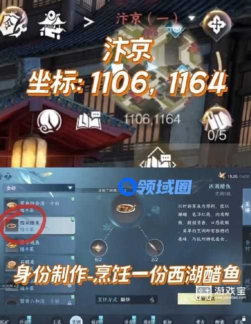 1、点击身份制作,烹饪一份(西湖醋鱼),如果没有烹饪等级的话,可以先用通用经验升级一下!然后在点开技艺,直接烹饪这道菜,没有材料可以直接买。