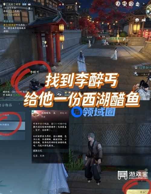 3、找到李醉丐,给他(西湖醋鱼)。