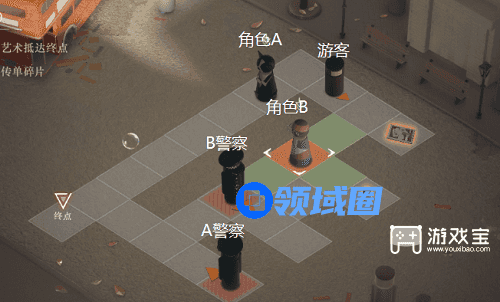 3、第二步拿到宣传单以后我们还是移动角色B移动到下图这个位置,我们就可以开始移动角色A向前方移动一步,这个时候B警察就会走开了。