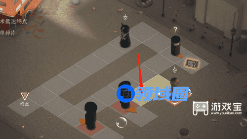 1、第一步先操控角色B区捡旁边的道具吸引游客的注意,把道具仍在下图这个位置。