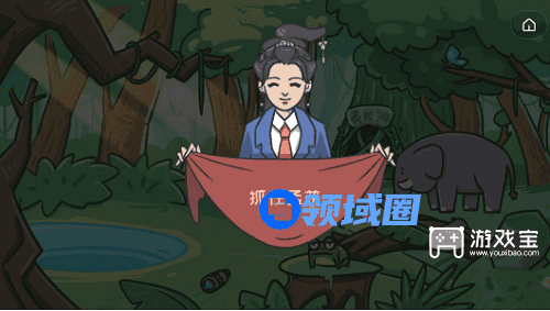 三擒孟获:拖动大象到水塘喝干水出现宝箱,点击锁,密码为锁上颜色对应,1只蝴蝶,4只虫子,3声蛙鸣,即143,开锁出现孟获,点击抓获。
