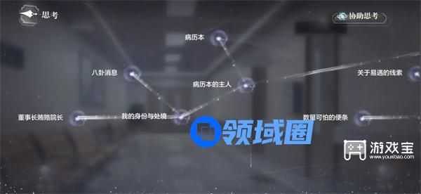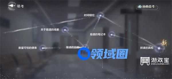 2、房间二,完成线索手机之后和易遇对话随后离开,继续前往房间三收集线索,点击【思考】