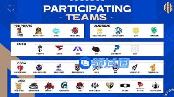 基于PGS积分和PGC积分,SONIQS、17GAMING、TwisedMinds、Danawa四支战队会直接获得本次赛事的门票。其他战队则是通过本地区联赛的表现来进行决逐。其中PCL和PEC赛区分别有6支战队、PWS和PAS赛区各4支战队,PTS赛区3支战队、PVS赛区2支战队,PJC、PCR、PML分别1支战队。