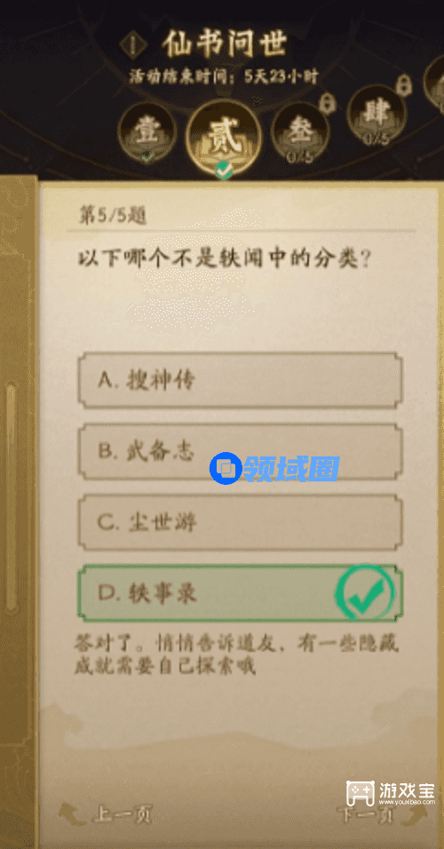 神仙道3仙书问世10月第二天活动中,玩家需要根据系统给出的题目回答出正确答案,正确数量达到8即可领取第二阶段奖励,游戏宝小编带来神仙道3仙书问世10月第二天答案攻略,希望可以帮到大家。