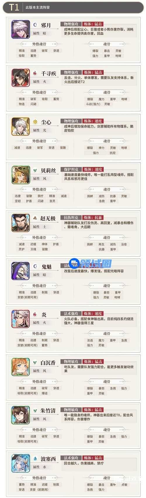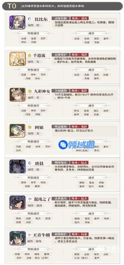 3、T0:此列魂师受版本影响较大,具体强度受版本影响。