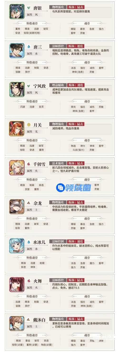 2、具体搭配需要根据自己阵容进行调整,各魂师强度都是在满魂骨情况下的进行的对比,而且跟若当前版本,过期不同。