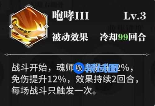胸骨技能对于敏攻系来说只能选择咆哮了,其他均是生机再生等回复技能,这对于比较脆的敏攻系来说不需要,咆哮是在在开局提升魂师的攻击力以及免伤能力,在强两回合内攻击力得到了显着的提升,受到的伤害减少。