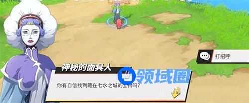 首先玩家来到这个岩场海湾这里,然后和这个神秘的面具人来进行对话,可以接取任务。