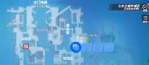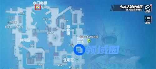就是在七水之城外城区,就是在这个水门电梯的左边区域,如图所示这里。