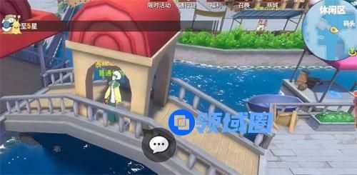 此时可以直接来到七水之城外城区,然后来到码头左边的这个桥上面的亭子这里。