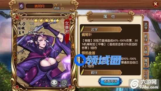 武学特性:1技能直线伤害附加50%几率中毒效果;2技能散三伤害30%几率附加蛊惑效果;两个技能都有附加伤害极其少见,中毒和蛊惑也比较实用。