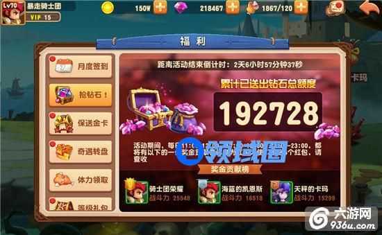 在主界面的【福利】按钮里,有许多和玩家切身福利相关的内容: