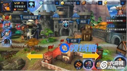 按住界面后左右滑动可查看主城,点击建筑可打开不同的功能建筑。