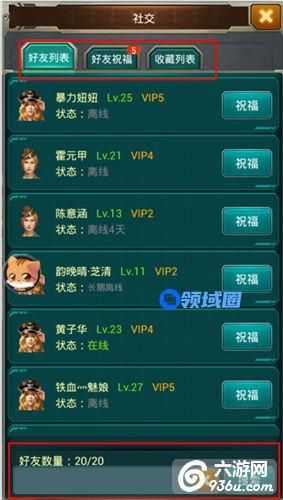 社交系统的界面有三个分页标签,分别是“好友列表”、“好友祝福”、“收藏列表”,好友列表的下方有搜索输入框,贴心的设计可以方便快速找到指定好友,在好友列表里可以收取好友祝福,1祝福=1能量,来而不往非礼也,收取祝福的同时不要忘了给好友们送去每日祝福哦~