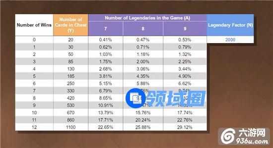 下面是经典挑战赛出传奇卡的几率,7 8 9代表传说卡数量。