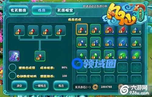 除了探索宝藏外,获得高级宝石的另一个重要途径就是用低级的宝石来合成,打开“炼命”界面,就可以对宝石进行合成操作了。点击右边包裹中的低级宝石,将它们放进合成栏,开始你的炼命之旅吧~要注意的是,合成栏中放入的低级宝石越多,合成高级宝石成功的机率也就越高,如果对自己的运气没信心的话,最好放满四个再进行合成哦!