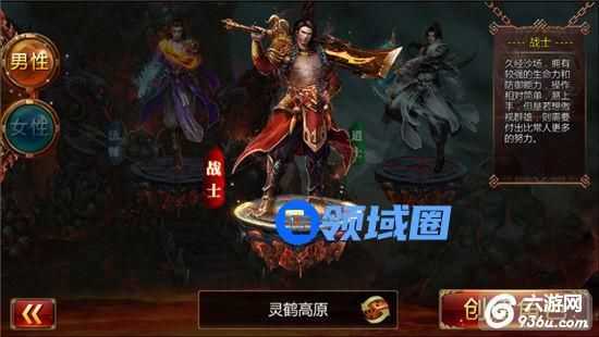 2、每个职业有男性和女性两个性别,点击角色图形或下方的性别图标进行选择;