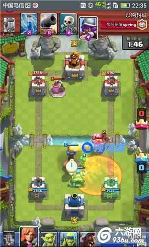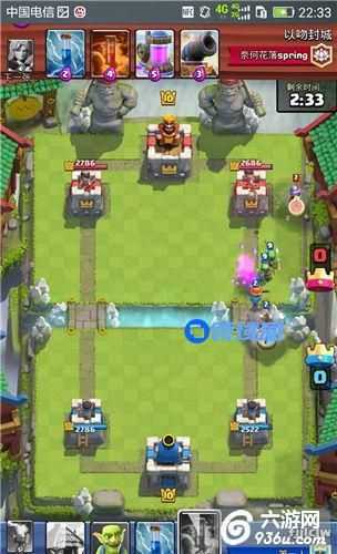 之后对面沉底下女武神攒费,我则下了哥布林小屋准备防守,因为感觉对面应该已经过出野猪了,所以地狱塔时刻等待着吃他一波攻势。