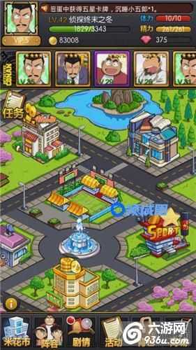 主地图上还有电影院(降对手攻击力)、足球场(降对手防御力)、健身房(提升侦探攻击力)、图书馆(提升侦探防御力)四个建筑,进入后可以使用金币或者钻石开启限时BUFF,在2小时内有效。