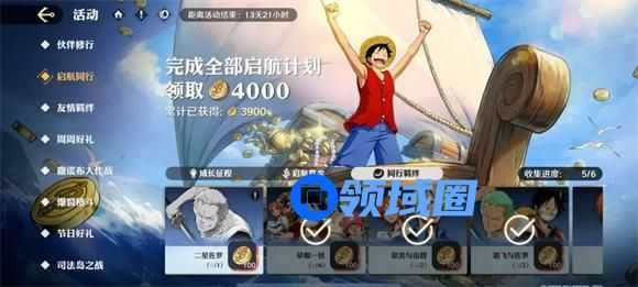 成长历程即等级晋升历程,起航资金即为战力提升过程,而同行羁绊则是获取伙伴路程。 三类任务完成一共可获得4000金币