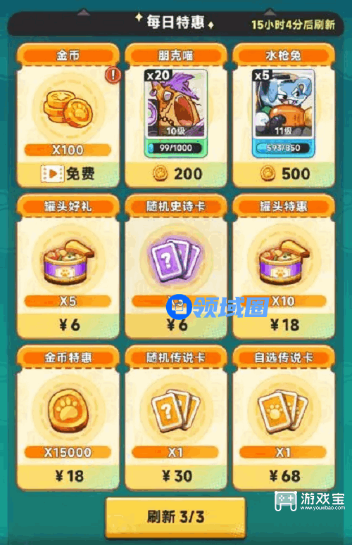 刷新萌宠品质随机,所以一般刷新到金卡一定要拿下!
