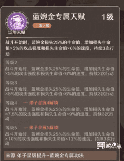 2、缺少伤害就上蓝婉银,觉得坤坤不够硬,吃不消太多伤害,补一个蓝婉金(选择水丹路线)奶一下,会舒服很多,而且蓝婉金的专属天赋也很有用,不妨把蓝婉金当个前排玩,生命值越低攻击力约高速度越快,当个前排试试,你会发现真香!